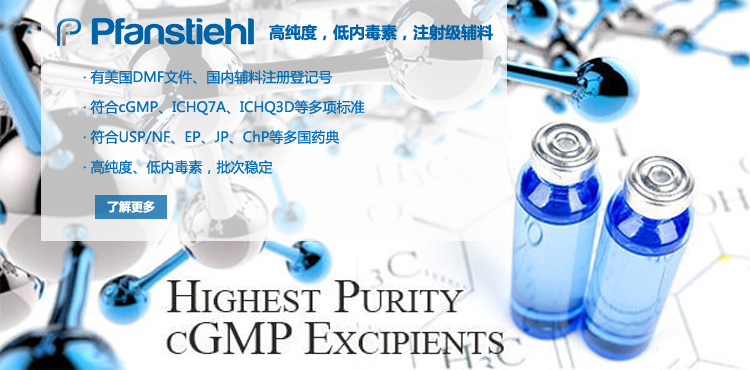 “熱烈祝賀Pfanstiehl的注射級甘氨酸Glycine(G-140)喜獲CDE登記號F20250000403, 這是Pfanstiehl產品獲得的第18個CDE登記號!”甘氨酸在醫藥輔料制劑中應用廣泛,, 可作為緩沖劑,增溶劑,穩定劑等,具有諸多優勢。Pfanstiehl秉承一貫高品質理念,為滿足全球生物制藥行業對于高品質甘氨酸的需求,隆重推出的注射級甘氨酸Glycine (G-140), 具有超高純度,超低內毒素,超低金屬殘留的特點,單獨檢測29種金屬離子,并且新增DNA,RNA,DNA酶,RNA酶和脂肪酶,亞硝酸鹽等多項質量指標的檢測,符合多國藥典規定(USP, EP, BP, JPE, ChP),可用于生物治療性藥物和疫苗的生產。產品信息:· 產品名稱:Glycine, High Purity, Low Endotoxin, Low Metals, USP, EP, BP, JPE, ChP (G-140)· 中文名稱:甘氨酸· 分子式:C2H5NO2· 分子量:75.07 g / mol· CAS號:56-40-6· 產品貨號:G-140產品特點: · 超高純度,超低內毒素,超低微生物含量,超低金屬雜質殘留· 質量指標新增DNA,RNA,DNA酶,RNA酶,脂肪酶和亞硝酸鹽檢測· 符合多國藥典:USP, EP, BP, JPE, ChP· 符合ICH Q3D標準· 符合GMP標準· 已獲DMF和CDE登記號 產品應用:· 緩沖劑· 穩定劑· 增溶劑如果您對Pfanstiehl注射級別Glycine G-140感興趣,歡迎聯系Pfanstiehl 中國區代理商北京西美杰科技有限公司獲得如下詳細的產品概況說明文件和測試樣品。Pfanstiehl Inc.最新產品系列如下,歡迎聯系北京西美杰科技有限公司獲取100g裝免費樣品。北京西美杰科技有限公司為Pfanstiehl中國代理,為客戶提供完善的技術支持與售后服務。歡迎撥打西美杰客服電話400-050-4006或者登陸網站www_xmjsci_com.wb915ei4.cn了解更多信息。 更多>